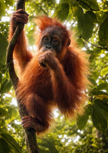 Moments from Bukit Lawang's wild orangutan treks.
