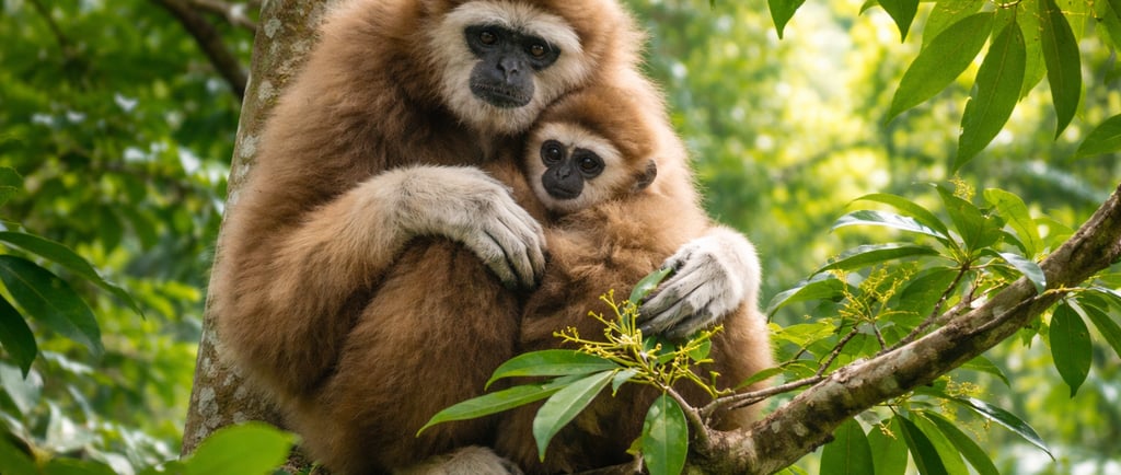 - Gibbons - Renowned for their acrobatic skills, gibbons are often heard before they are seen, filling the jungle with their distinctive calls as they move through the trees.